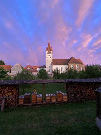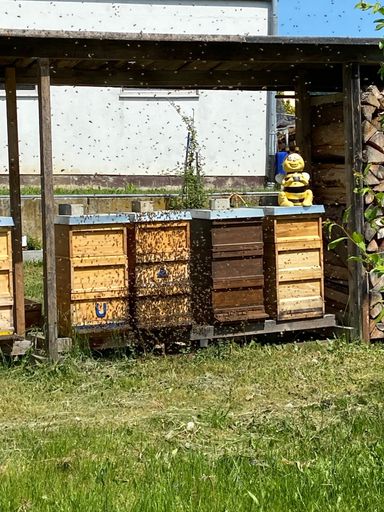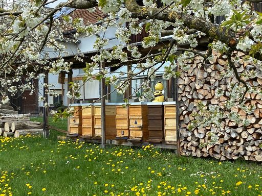 Direkt neben unserer Streuobstwiese leben unsere Bienenvölker – hier entsteht unser naturbelassener Honig, ganz ohne lange Wege und voller Leben.